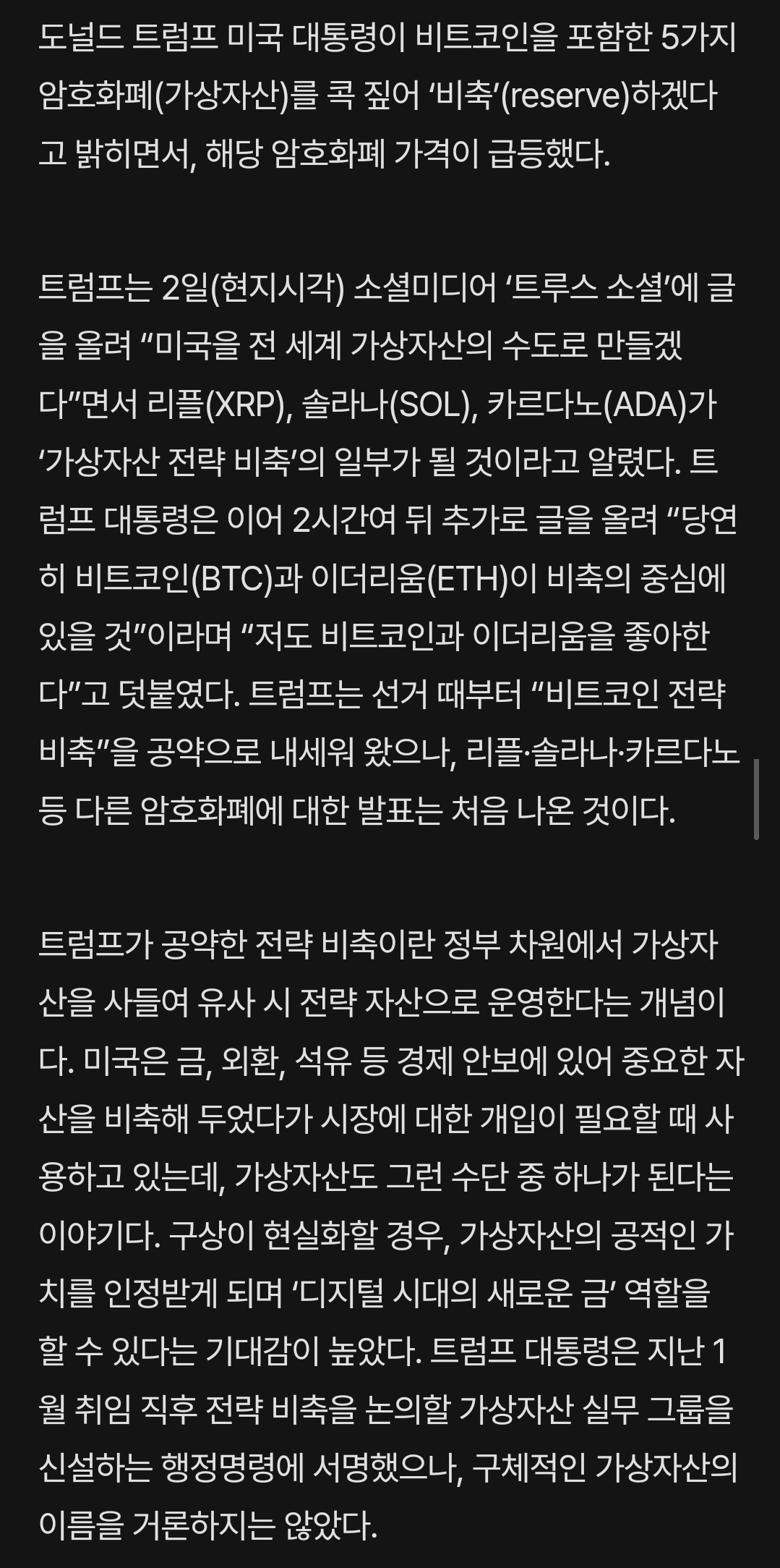 트럼프가 전략자산비축하겠다는 코인